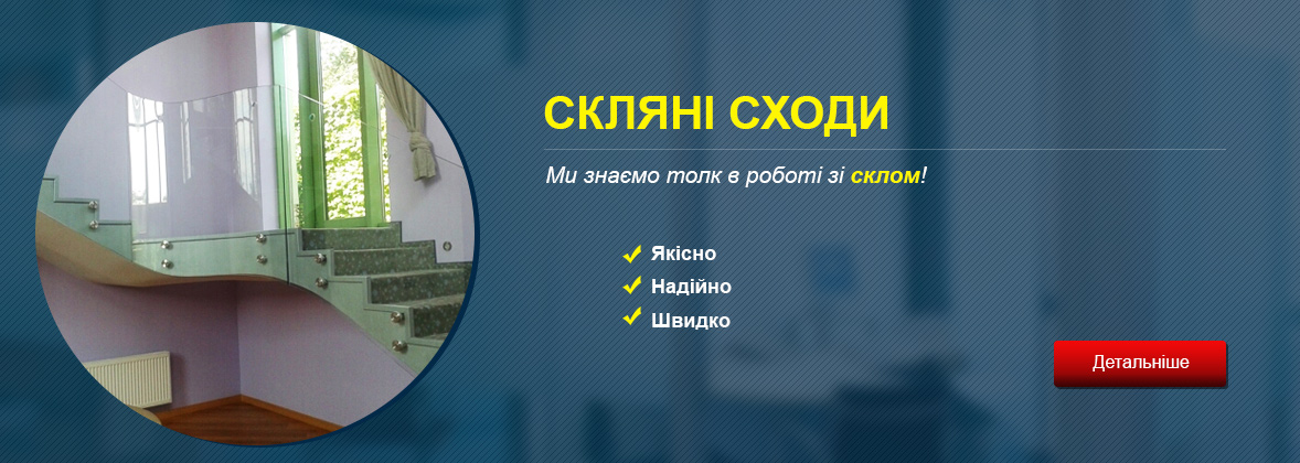 Наша компанія виконує роботи з виготовлення скляних виробів на замовлення будь-якої складності, починаючи від простих дзеркал і закінчуючи складними сходовими конструкціями. Враховуючи, що скло - матеріал досить крихкий, роботи зі склом вимагають особливої акуратності й уваги, що завжди враховується нашими майстрами як при виготовленні виробів, так і при їх установці, якщо це необхідно замовникам. Ми будемо раді виконати для вас скляні вироби на замовлення. Ціна їх буде приємним доповненням до вашого придбання, а якість дозволить не згадувати про заміну речі довгі роки.